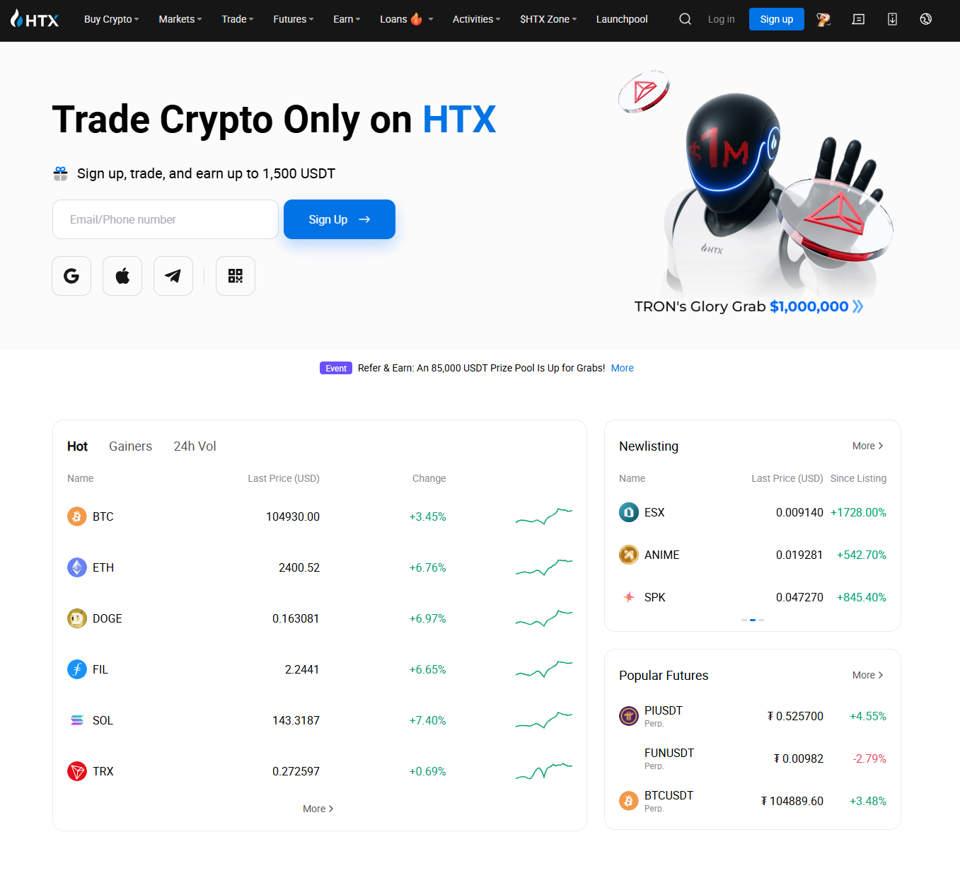 Once logged in, HTX offers a variety of features designed to enhance your trading experience: